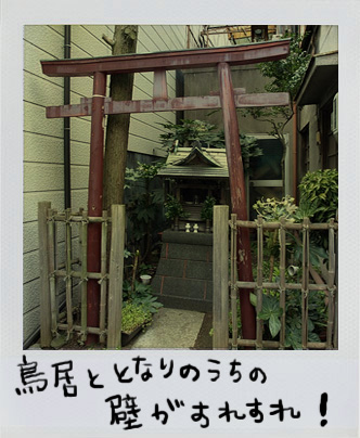 豆腐屋さんをあとにして歩いていくと、 おうちとおうちに挟まれた お社が突如出現したり。