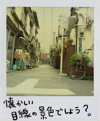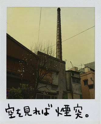 煙突も好きですが、 私のおすすめの景色は、 曳舟湯正面の道にしゃがんだこの一枚。